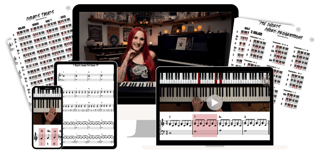 Get your FREE access to a piano chord course and learn how to play hundreds of songs!