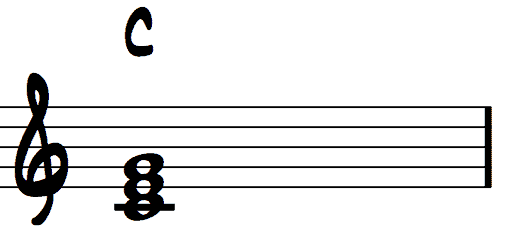 In the C major scale, the notes of the first, third and fifth degrees are C, E and G. Therefore, the C major chord is composed of C, E and G.