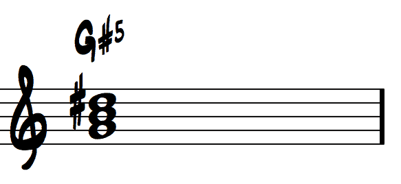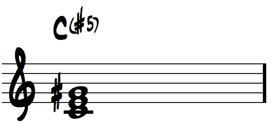 The augmented triad is a major chord that has a sharpened fifth degree. It is composed of the degrees I, III and #V.