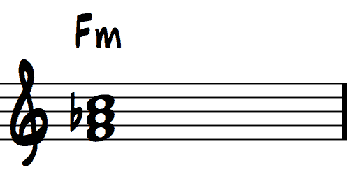 To find the notes of the F minor chord, we have to remember the notes of the F major chord, F, A and C. To transform the F major chord into a F minor chord, you have to flatten the third degree, A becomes Ab. The F minor chord is composed of F, Ab and C.