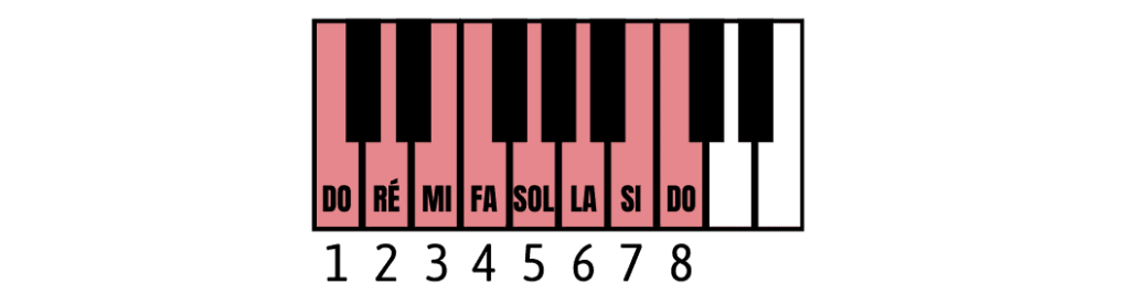 Les degrés de la gamme de do majeure ressemble à ça: